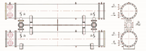 列管式冷卻器由兩只相同面積的冷油器和三通閥裝置構(gòu)成,一只工作,一只備用,每個(gè)冷卻器能承擔(dān)整個(gè)系統(tǒng)的冷卻負(fù)荷,管板一頭固定,一頭浮動(dòng)、可拆卸的管束和水室箱蓋,便于運(yùn)行過程中清洗、檢查和維修。冷卻器的材質(zhì),根據(jù)使用場所、水系統(tǒng)條件可有多種選擇。